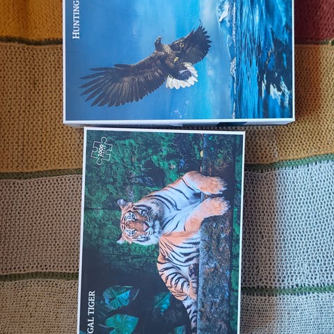 Figurskåret puslespill med 300 biter og motiv av ørn. Puslespillet måler ferdig samlet hele 68,5 x 76 cm. Det medfølger lite hefte med fakta om ørnen og et bilde som viser det ferdige puslespillet.