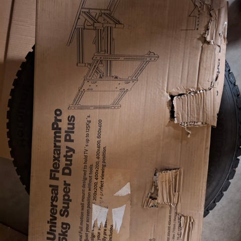 Demontert og klar for henting. Skruer som på bildet følger med legger ut det som er bak TV-en snarest.