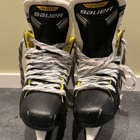 Bauer ishockeyskøyter i størrelse 35. Skøytene har svart og gul farge og er designet for ishockey. Egnet for bruk på isbanen.