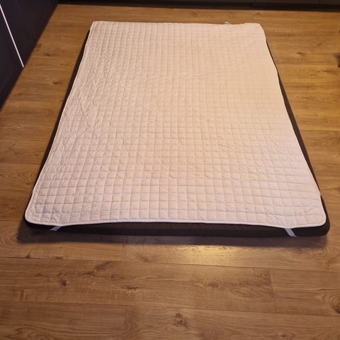 Overmadrass var kjøpt brukt, så den trenger seg en vask. Jeg mener sengene er kjøpt på jysk og koster 11.000,- ny.