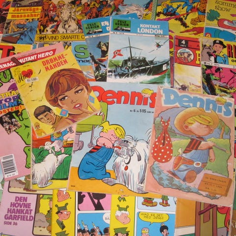 Samling av fire tegneserier med titlene Buddhas fange, Viggo og Kampen om Oklahoma. Inneholder ulike historier og illustrasjoner, utgitt på norsk. Passer for samlere og lesere av tegneserier.