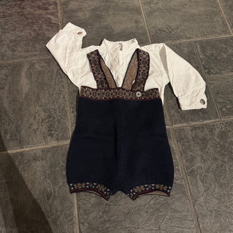Festdrakt / bunad til gutt. Vest, skjortebody og bukse/nikkers. Mye bruk igjen.
