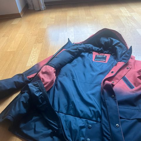 Peak Performance jakke i rød og svart farge. Jakken har glidelås foran, hette og flere lommer. Egnet for utendørs bruk og gir beskyttelse mot vær og vind.