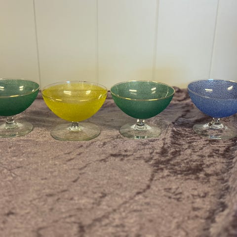 Retro dessertskåler i pulverglass fra Magnor Glassverk. selges fortrinnsvis samlet