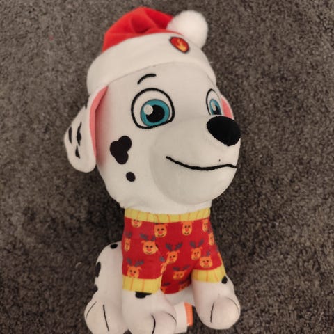 Paw Patrol Marshall kosedyr i rødt og hvitt. Mykt materiale, egnet som leketøy for barn. selges mot henting
