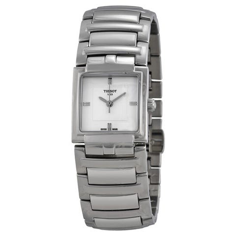 Tissot dameklokke med metall lenke og rund urskive. Klokken har en kombinasjon av sølv- og gullfarget metall.