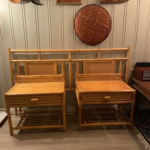 Seger 2 stykk vintage nattbord i bambus. Nattbordene er i god stand, og ser ubrukte ut.