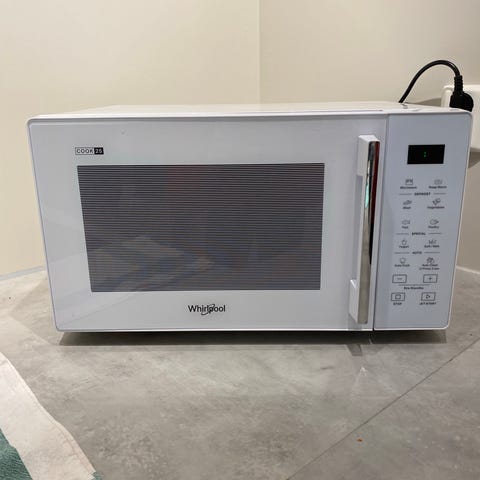 Allsidig Whirlpool kombinasjonsmikrobølgeovn. Vi har vært storfornøyd med denne, særlig grill funksjonen, men må selges grunnet overgang til integrert. Den varmer maten jevnt og raskt, og har en overraskende effektiv "jet defrost" funksjon som tiner dypfrossen kjøttdeig på minutter!