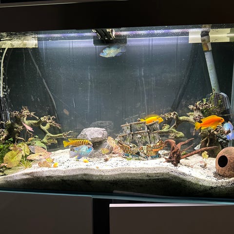 720 liters akvarium benk følger med, benken ble kjøpt i år. Kan også få med dragon stone,luftpumpe, eheim profesjonell akvarium pumpe, og mer uttstyr. Lysene ble kjøpt på akvarieboden i fjord og montert. Vi er frivillige til å hjelpe og bære det ut. Gjerne send melding om du er intrisert og komm med bud!!!