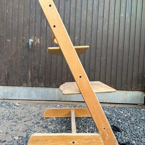 God gammeldags Stokke tripptrappstol i solid tre. Rød. Tidløs. Justerbar. Ergonomisk. Nypris i dag 2650,-