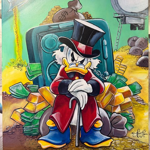 Nøkkelord : hannaskunst hannaisabelaguirreart onkelskrue skruemcduck scrooge scroogemcduck scroogeart disneyart onkel skrue andeby popart popup kunst moderne. onkel skrue, scrooge , mc duck, poker, andeby, donald duck, pop art, exit, bitcoin, finans, investor, penger, disney, andeby, luksus, gullbar, gull, gold, 585