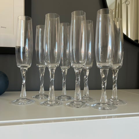 Selger 4 fine og lite bruke champagneglass. Vet ikke hvilket merke de er fra så selges billig. Selges grunnet kjøp av nye.