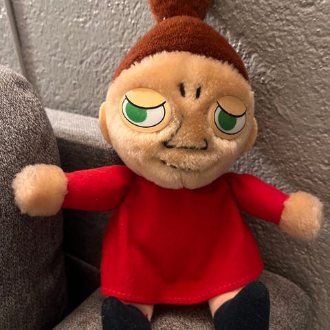 Mummi Mummi kosedyr i hvit farge. Laget av mykt materiale, egnet som leketøy for barn. god som sanseleke for de minste; knitrende materiale i armer og bein og elastisk hale med bjelle inni. selges mot henting.