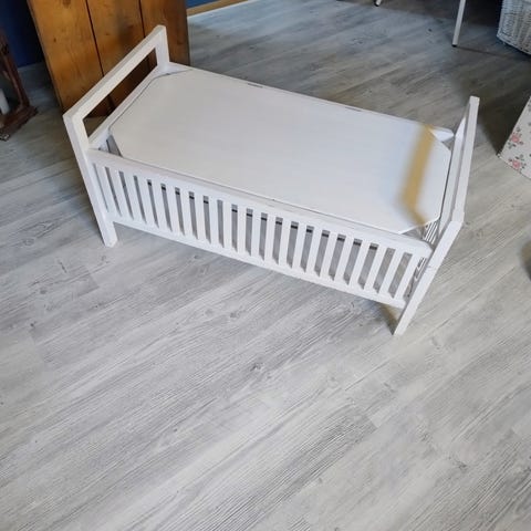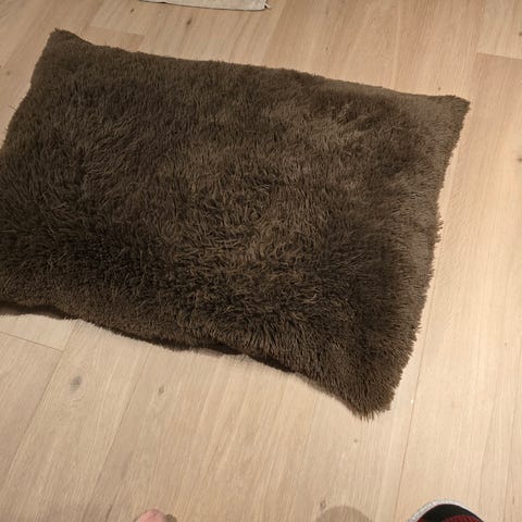 Hjemmesnekret hundeseng med solid treverk. Str: 114x97x40