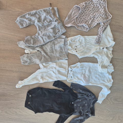 Klespakke str 62/68 med sokker og smekker. Selges billig, alt for 300kr!