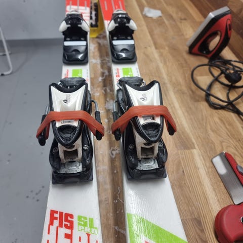 Meget god alpinski for barn/ungdom. 150 cm. Grei tilstand, med litt riper her og der, men ikke noen vesentlige som går ut over funksjon. Scott staver 110 cm følger med. En stav har en bøy, se bilde. Oppgitt pris eller bud.