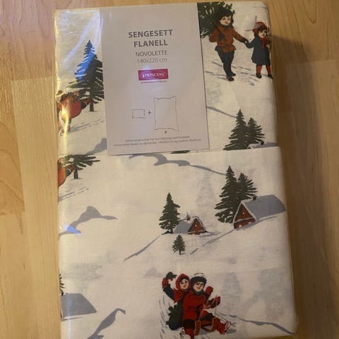 Nytt sengsett til dobbeltdyne fra Princess. To putetrekk medfølger. Mørkerød farge, fint til feks jul. Aldri brukt, kun tatt ut av innpakning. Ny pris er 1000 kr.