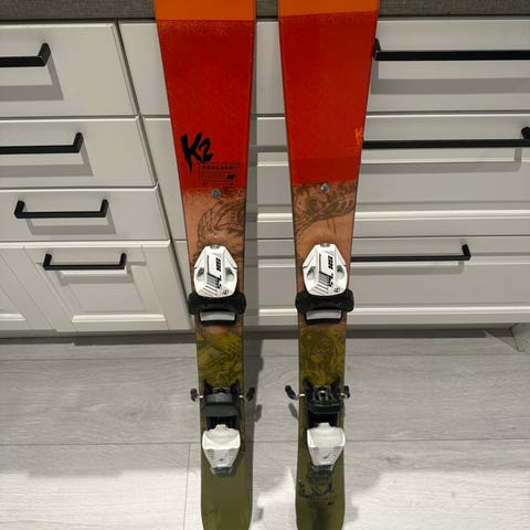 Godt brukte K2 Twintip Ski. En del bruksmerker, men alt fungerer som det skal. Nordica skistøvler mondopoint str 24-25 (tilsvarer ca 38-39). Selges samlet kr 700,-