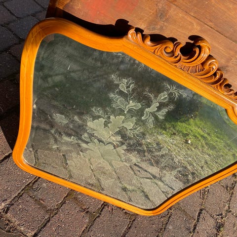 Original speilglass med håndmalt dekor