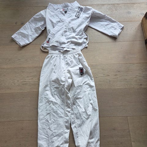 SMAI Karate Club Classic kampsportdrakt for barn. Størrelse 0, som tilsvarer barn på 130 cm. Drakten er lite brukt og pent holdt, men har et lite merke/mørk strek på det ene benet (se bilde).