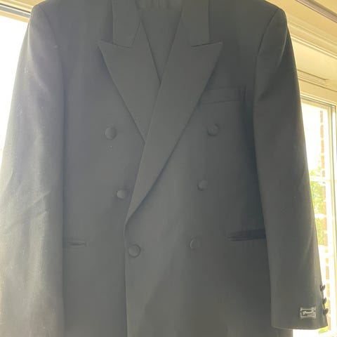 Dobbeltspenn dressjakke fra These Glory Days og bukse. Begge i str 54. Mørkeblå. Lekker dress. Selges da den er for liten for meg nå. Brukt et par ganger.