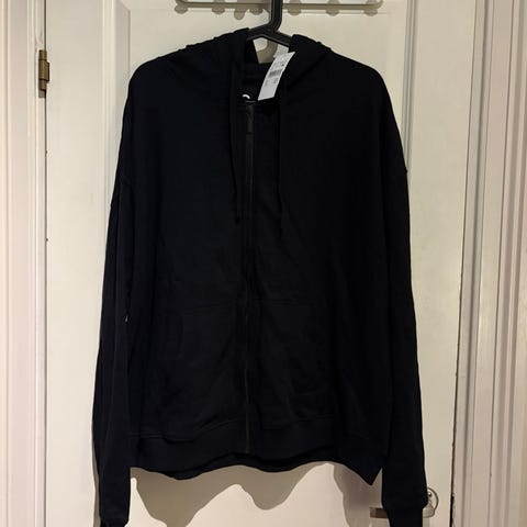 Cubus hettegenser i blå/lilla ish farge, størrelse XL for kvinner. Laget av bomullsmateriale. Genseren har hette og lomme foran.