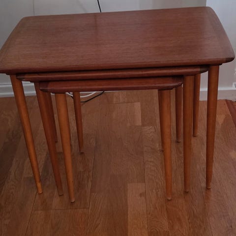 Settbord i teak / 3 små bord selges samlet