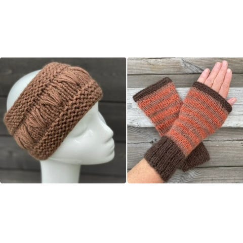 Sett med pannebånd /ørevarmer og pulsvanter /pulsvarmere, håndstrikket, nye
