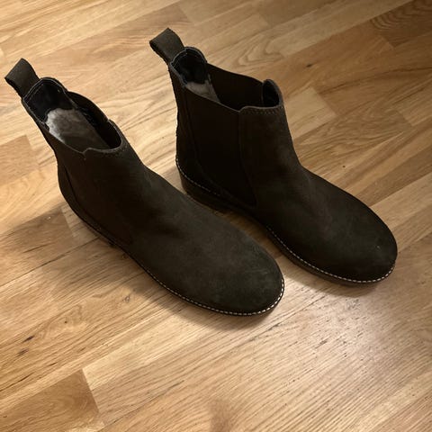 Jim Rickey boots i skinn, uten fôr. Robuste, god såle for snø og vinter. Veldig pene, passer på jobb og hverdag. Nye! Passer størrelse 38 akkurat.