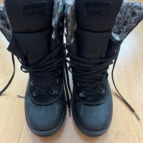 Foret, vanntett, brune og offwhite med røde detaljer. Glidelås i siden. Gode og varme.