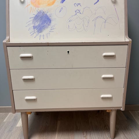 Gir bort to stk IKEA Flaxa barnemøbel i hvit og grønn farge. Møbelet har flere hyller for oppbevaring og er designet for barn. Dybde 30 cm, høyde 100 cm og bredde 97 cm.