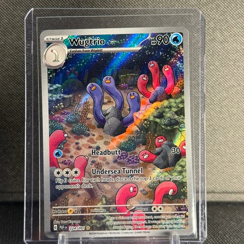 Rayquaza GX Pokémon kort med 180 HP. Kortet er i beskyttende plast og sertifisert med høy vurdering (GEM MT) 10
