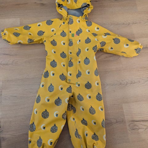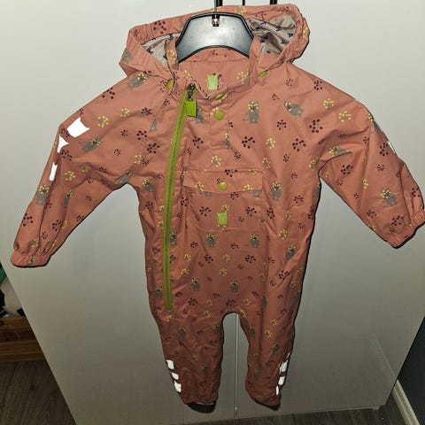 Kattnakken barneklær dress i størrelse 86, laget av polyester. Dressen er blå og designet for unisex bruk. Den har elastiske mansjetter og reflekser for økt synlighet.