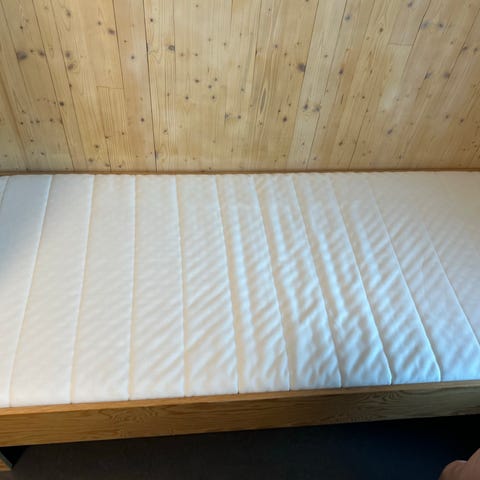 Madrassen ble kjøpt for omtrent ett år siden, og er lite brukt. Har hatt både overmadrass og beskyttelsestrekk over, så den ser ut som ny.