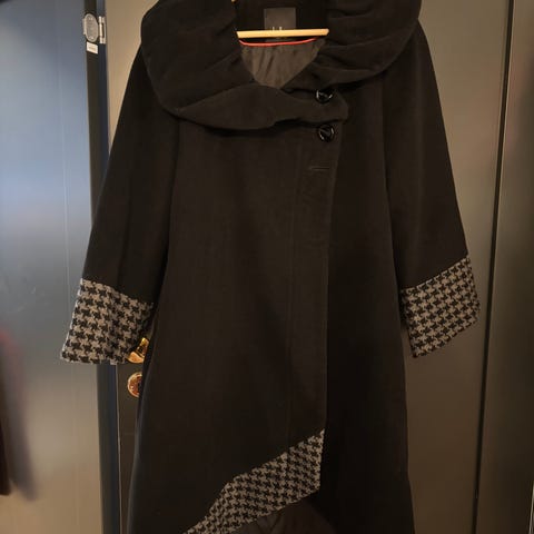 God og varm vinterjakke fra Object. Str. 42. Jakken fremstår som ny, den er brukt 3-4 timer. Ble dessverre litt trang til meg. Knapping i front og glidelås, dobbel glidelås så den kan åpnes nede.. Splitt i midten nede bak, kan lukkes. Hetten kan ikke tas av. Lommer i front med knappe lukking. Stramming i livet hvis man vil. Kan sende hvis kjøper betaler porto.