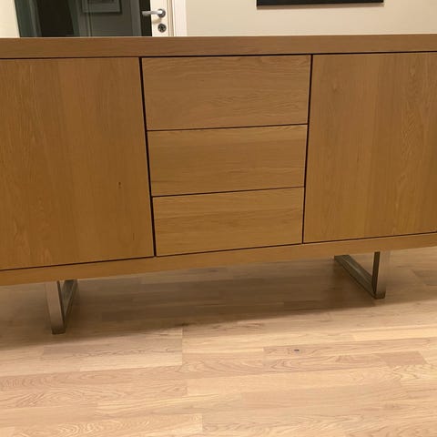 Selges grunnet overgang til den lyse modellen 😊 prisen er lav grunnet skrap på topplaten, men dette kan enkelt dekkes over med en vase eller andre pyntegjenstander.