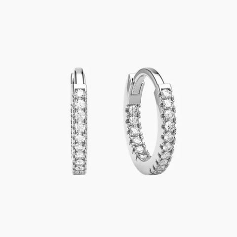 Sarzana øreringer i rhodinert sølv 925S, blankpolert overflate med fasettslepne klare zirkonia
