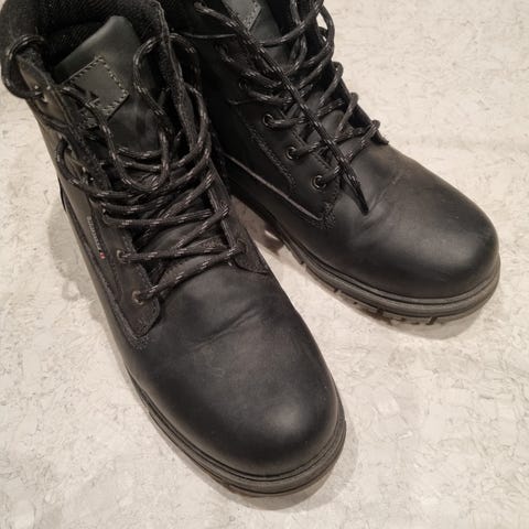 ECCO Vinterstøvler i størrelse 44 med brun farge. Støvlene har snøring og er foret med isolerende materiale for varme. Yttersålen har mønster for godt grep. Egnet for bruk i kalde og vinterforhold.