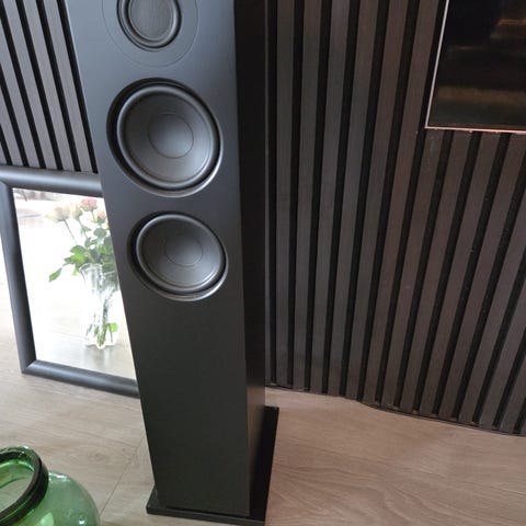 *Selges for å kjøpe noe mindre. Høyttalerne er egentlig for store i rommet de står i, og yter ikke sitt fulle potensial her.(og eller mangel på akustikk panel) Hører hvor mye bedre lyd de gjengir når jeg går bakerst i rommet hvor jeg ikke pleier å sitte. Anbefales til en eier med større rom. Jeg har 6,6m2 ( 3m x 2,2m )