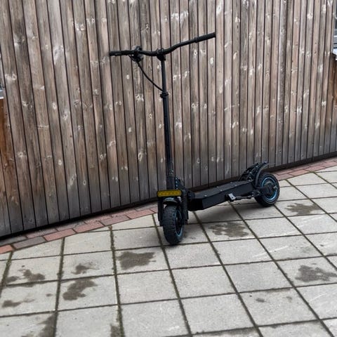 Den er pent brukt ingen feil på den nye bremseklosser både bake å fremme den har 700-800 km på seg som er veldig lite for elsparkesykkelen den har custom design med karbon fiber å rød led lys på siden av dekket.