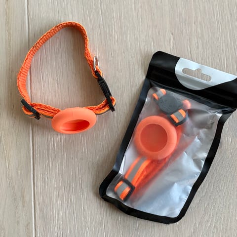 Nytt halsbånd med airtag brikke. Denne legges enkelt inn på «find my iPhone» appen. Utrolig enkelt og greit