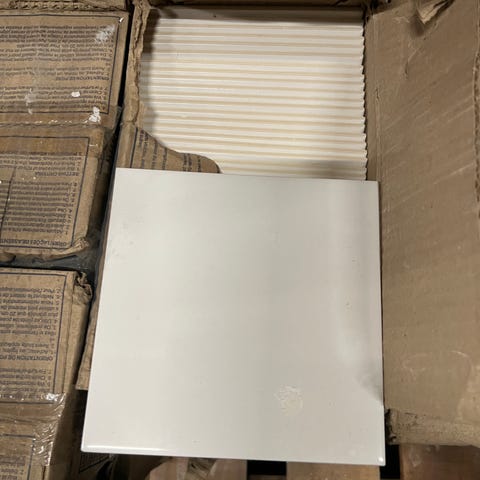Ca. 2,7m2 hvite 15x15 flis. Fint egnet til å legge over kjøkkenbenken. Må hentes.