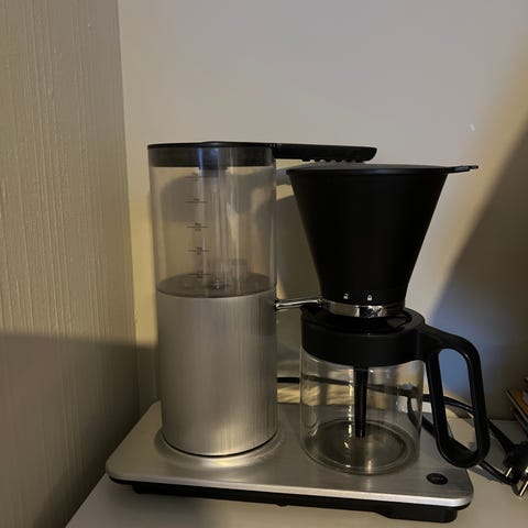 Wilfa Svart Aroma kaffetrakter med glasskanne. Kaffetrakteren har en kapasitet på 10-12 kopper og er designet for enkel bruk med tydelige målemarkeringer på vannbeholderen. Passer for hjemmebruk eller mindre kontorer.