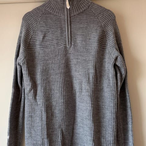 Kun vasket en gang med ullvaskemiddel. Passet meg ikke helt, så den ble bare liggende ubrukt. Størrelse medium.