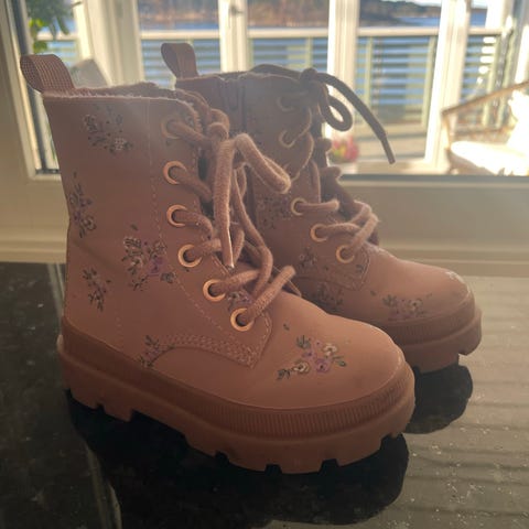 Støvler til jente med spenner, og mønster på siden. Sorte. Str 25.