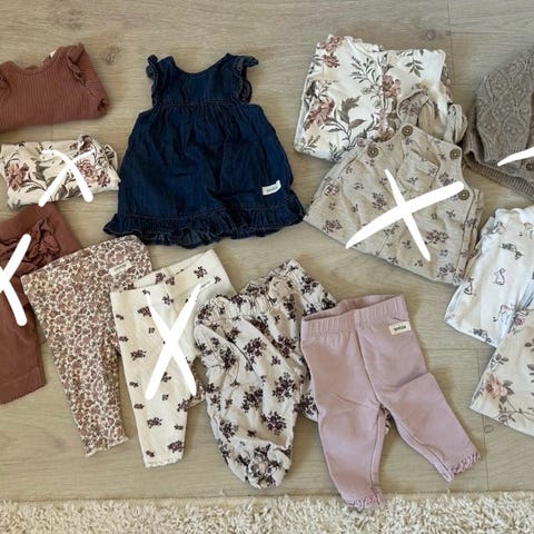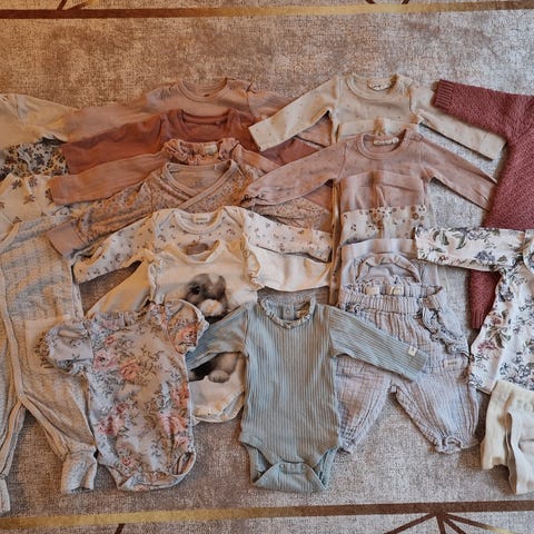 Stor klespakke for jente pent brukt i str.62🌸 Totalt 15 plagg. Bestående av: