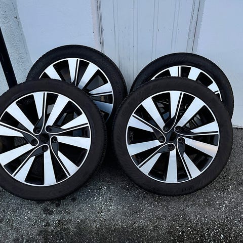Ble kjøpt til en skoda octavia 2015. Bilen ble solgt med gamle felger og piggfri dekkene som sto på.