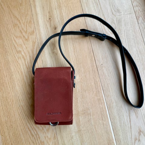 Rumpetaske / liten veske/bag fra Holzweiler i skikkelig kul oransje-farge. Perfekt for å oppbevare små ting. Har lomme på innsiden.