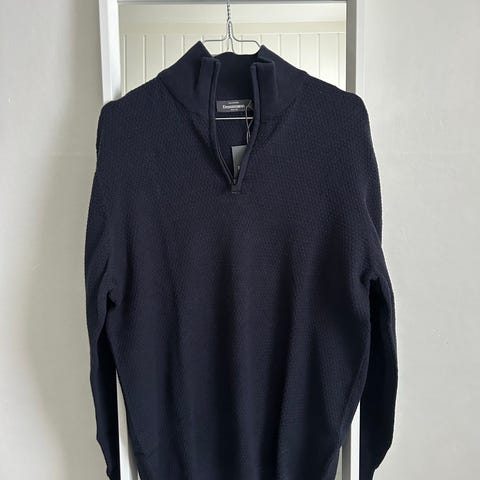 Jack and Jones genser i størrelse M, laget av bomull. Genseren har en grå farge og en glidelås i halsen.