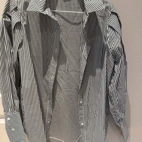 "Kornelia Shirt" fra Camilla Pihl. Nydelig, trendy skjorte i svart farge i crispy bomullskvalitet. Skjorten har krage, lange ballongermer med knapp i enden og skjult knappelukking foran. Delikate hullbroderi på ermene. Rett og avslappet i fasongen.